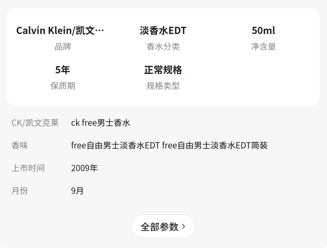 - free自由男士淡香水EDT50ml