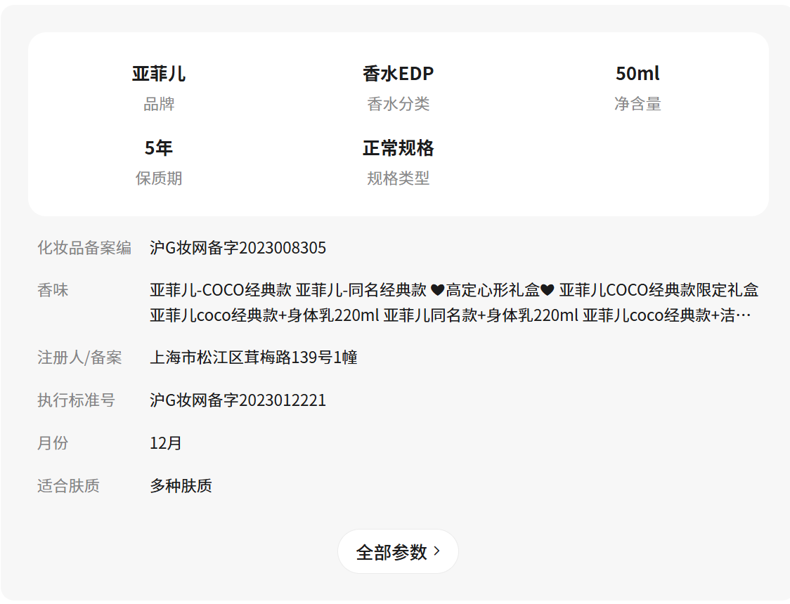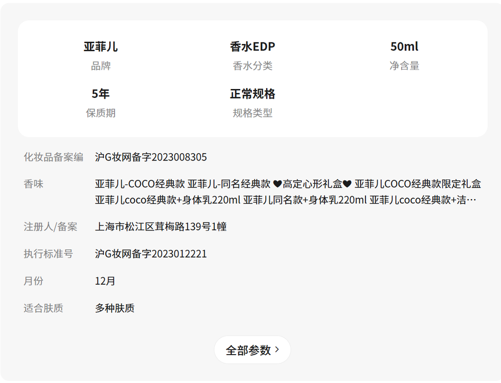 - 亚菲儿coco经典款50ml+身体乳220ml