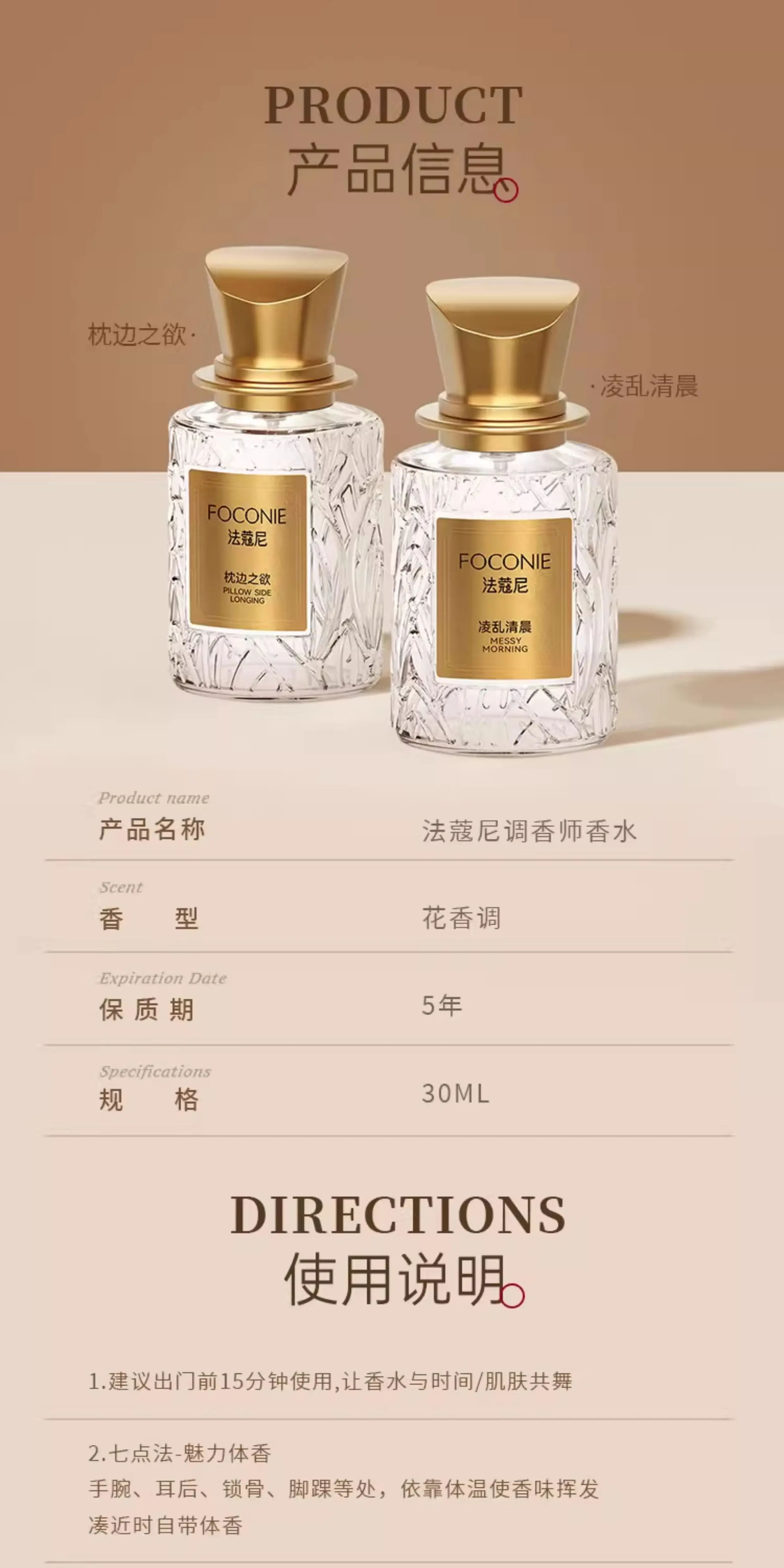 FOCONIE法蔻尼正品持久留香淡香高級小衆女士香水玫瑰花香學生