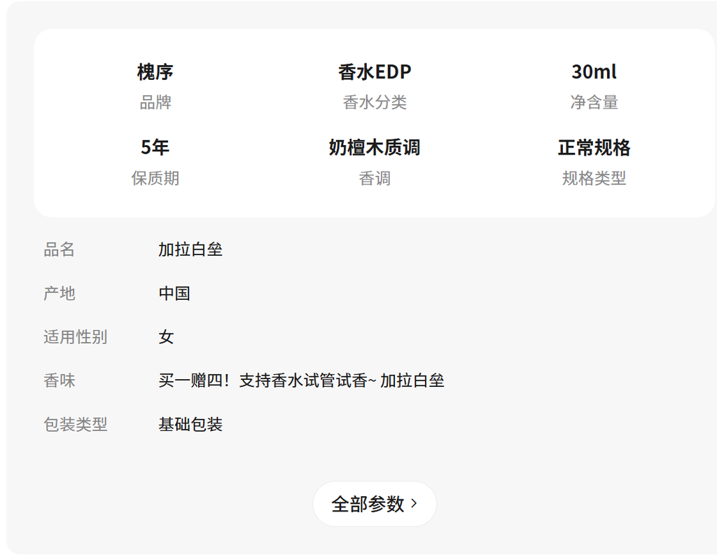 - 奶檀木質調加拉白壘30ml