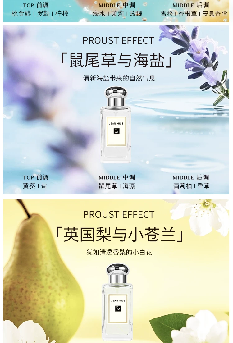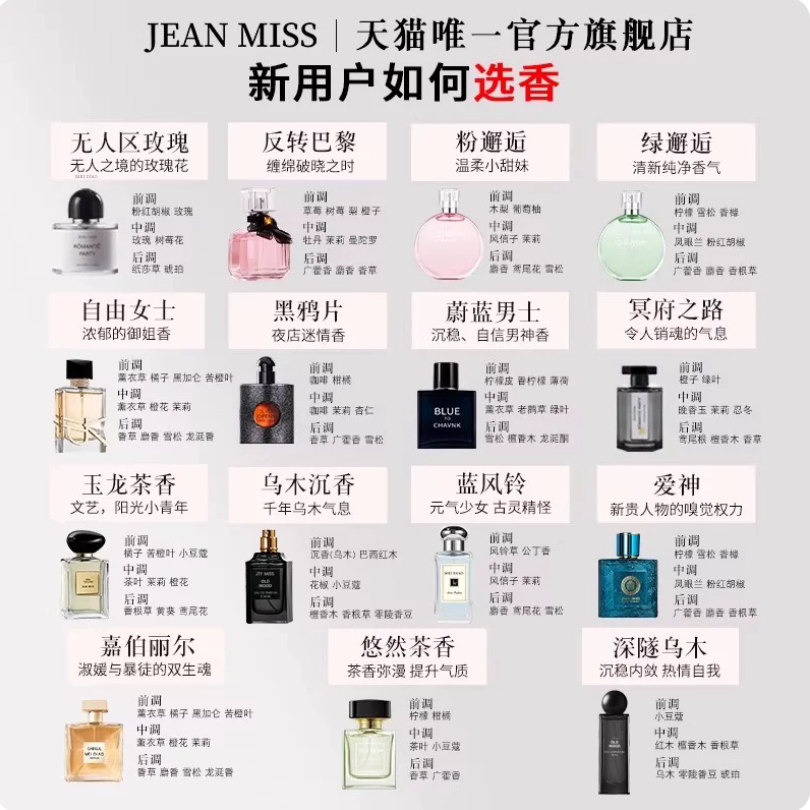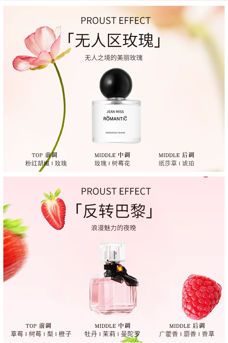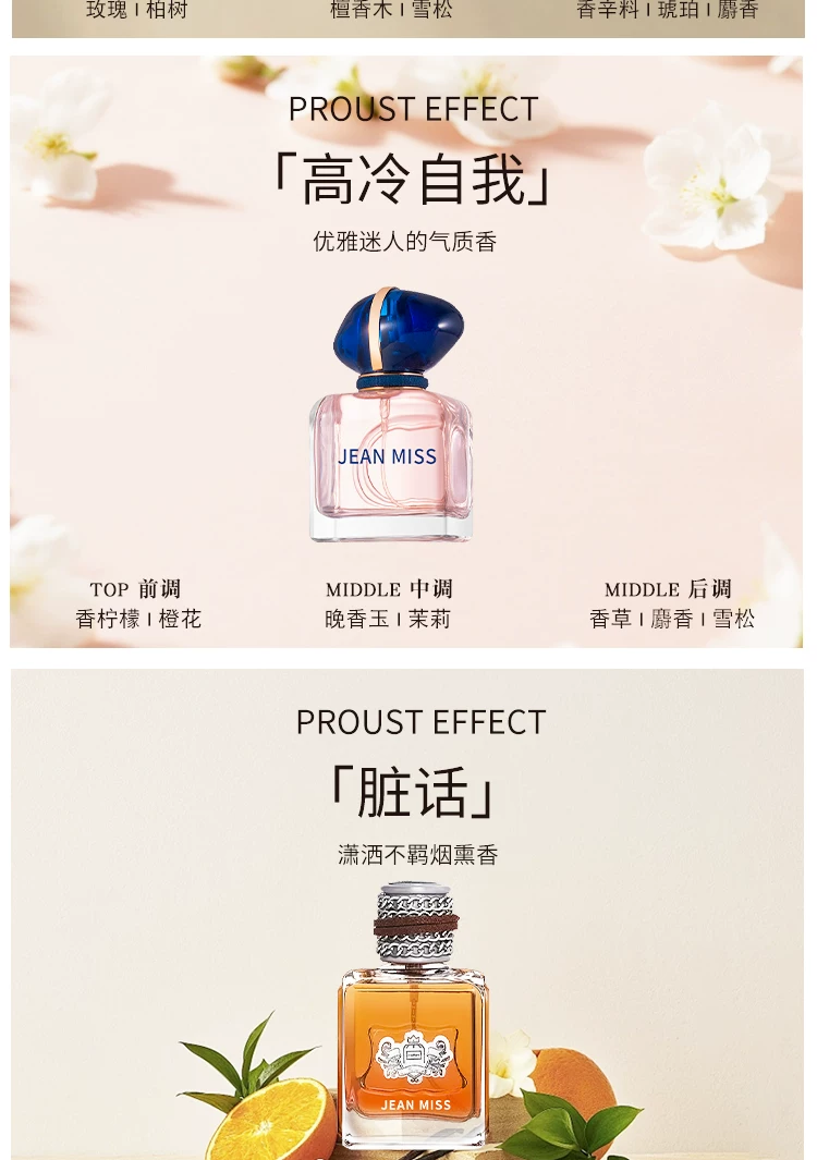 jeanmiss玫瑰香水女士正品官方旗艦店男士持久淡香白茶花果E3