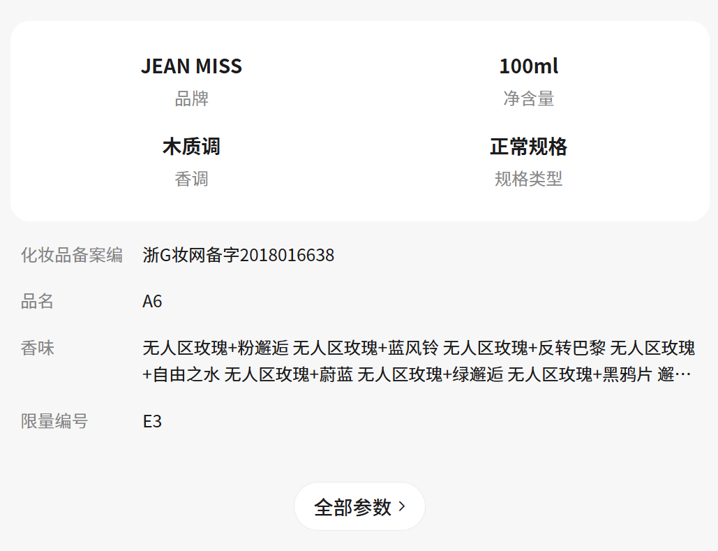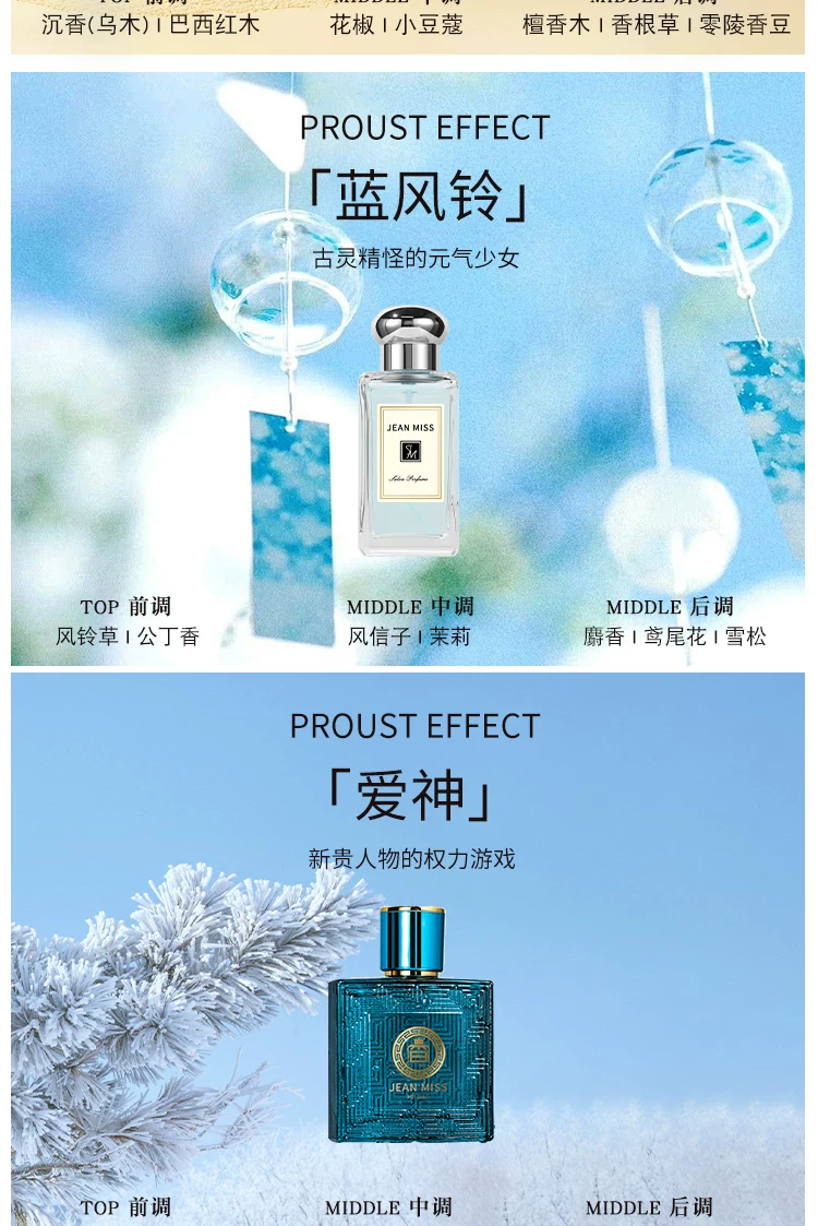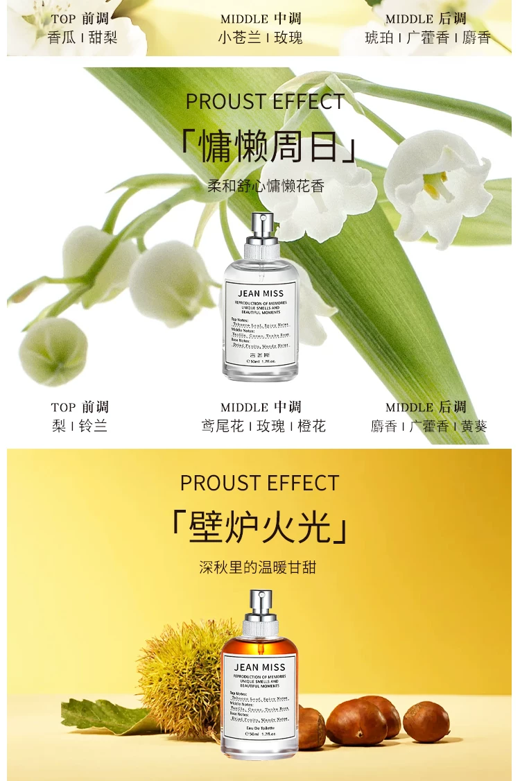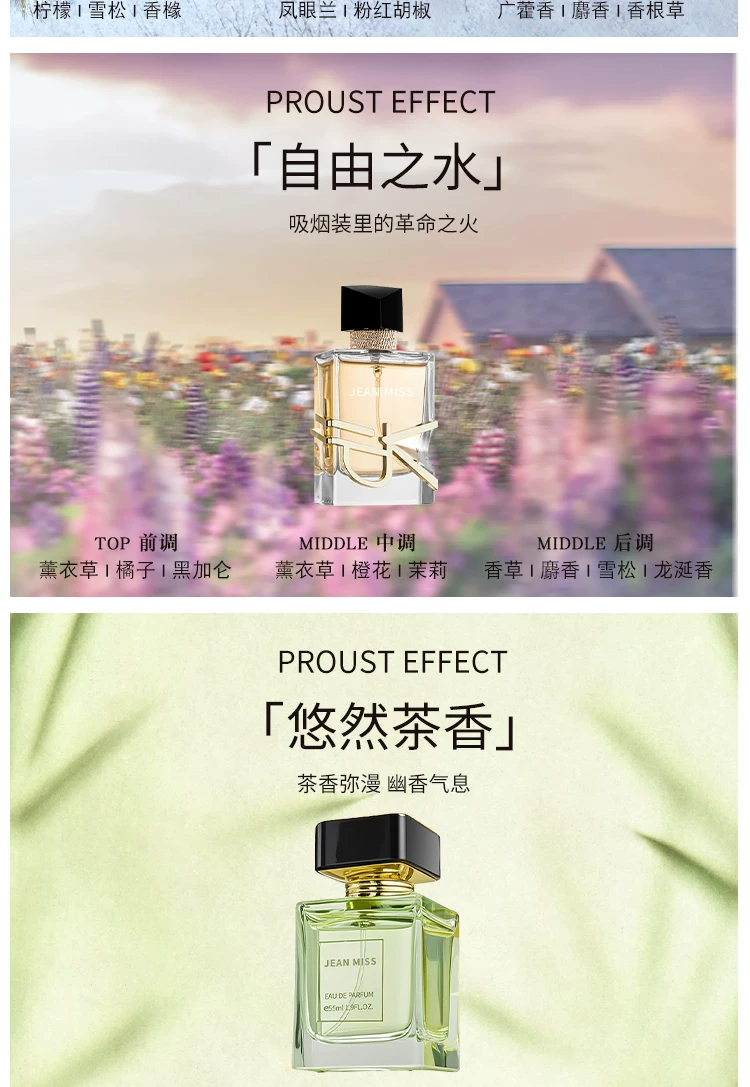 jeanmiss玫瑰香水女士正品官方旗艦店男士持久淡香白茶花果E3