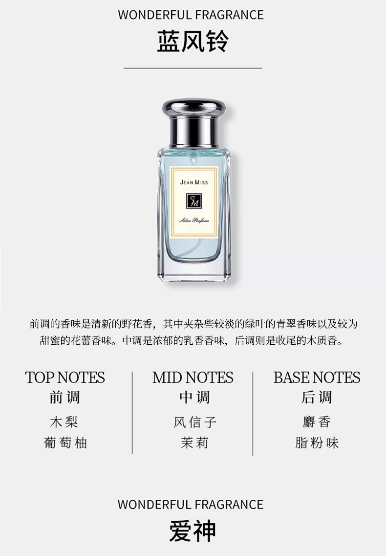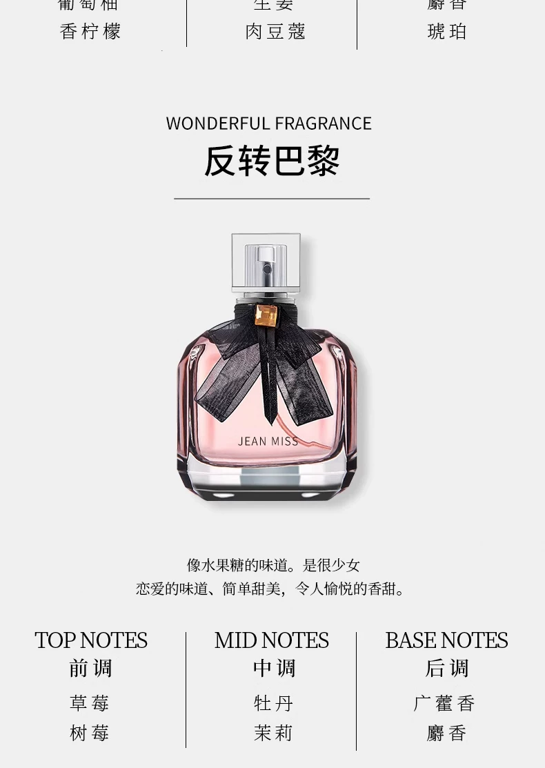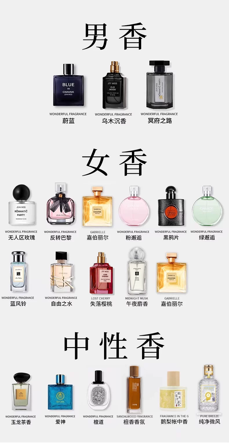 jeanmiss玫瑰香水男士正品官方旗艦店女士持久淡香白茶花果E3